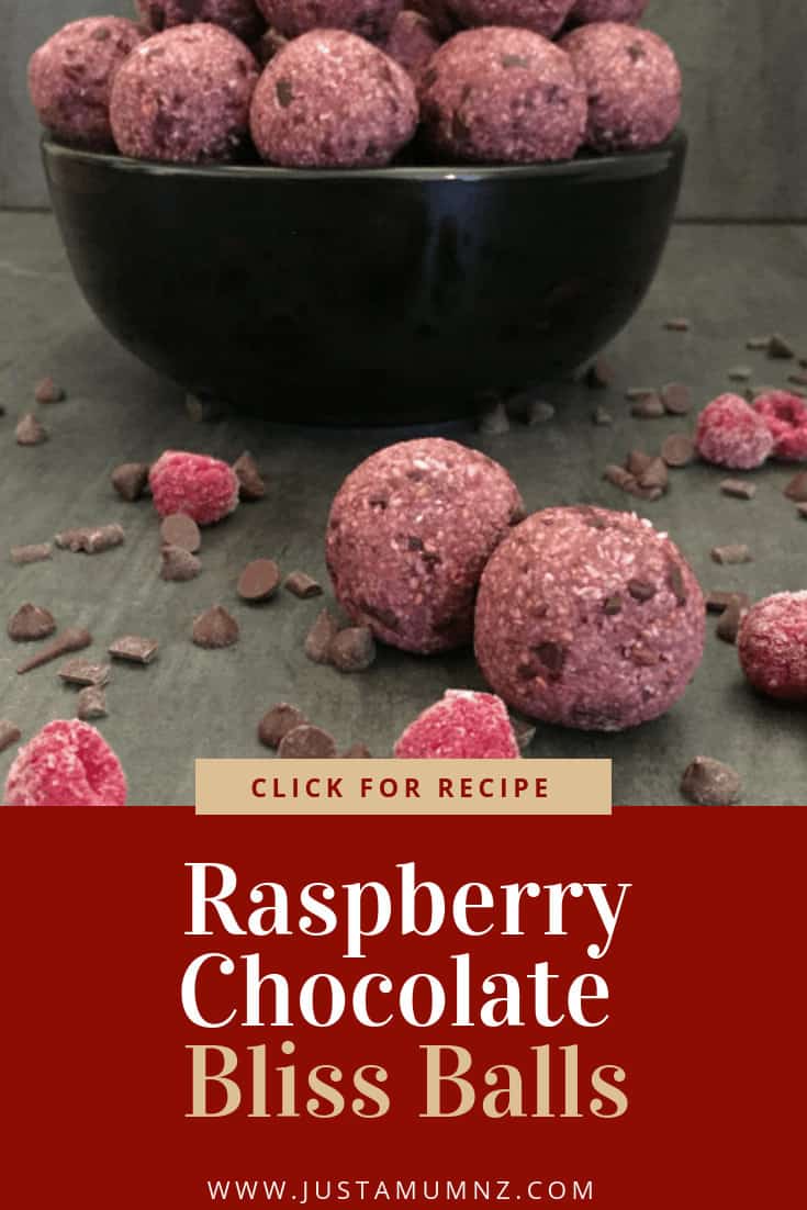 I used frozen raspberries in my Raspberry Chocolate Bliss Balls as that is all that we have available right now, they are much less ‘wet’ than fresh too, so if you are using fresh you may wish to add additional nuts or coconut to the mixture.