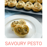 Delicious puff pastry Palmiers, a lovely 3 ingredient recipe that is so easy to make. Today I have made them with both pesto and sweet fruit chutney, but the options for flavours are up to you. Sweet Chilli Sauce, Cranberry jelly, caramalised onion chutney and more are options, I wonder what you will use?
