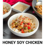 Today I have served my Honey Soy Chicken Stir Fry with rice, spooning generous servings of the chicken over bowls of rice with lots of the sauce, sprinkle with the sesame seeds and enjoy!