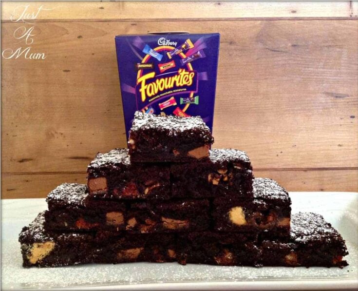 Delicious dense brownie filled with Cadbury Favourites or your favourite leftover chocolates