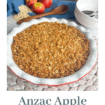 Delicious golden Anzac Crumble Topping in a thick layer over a lovely apple pie filling